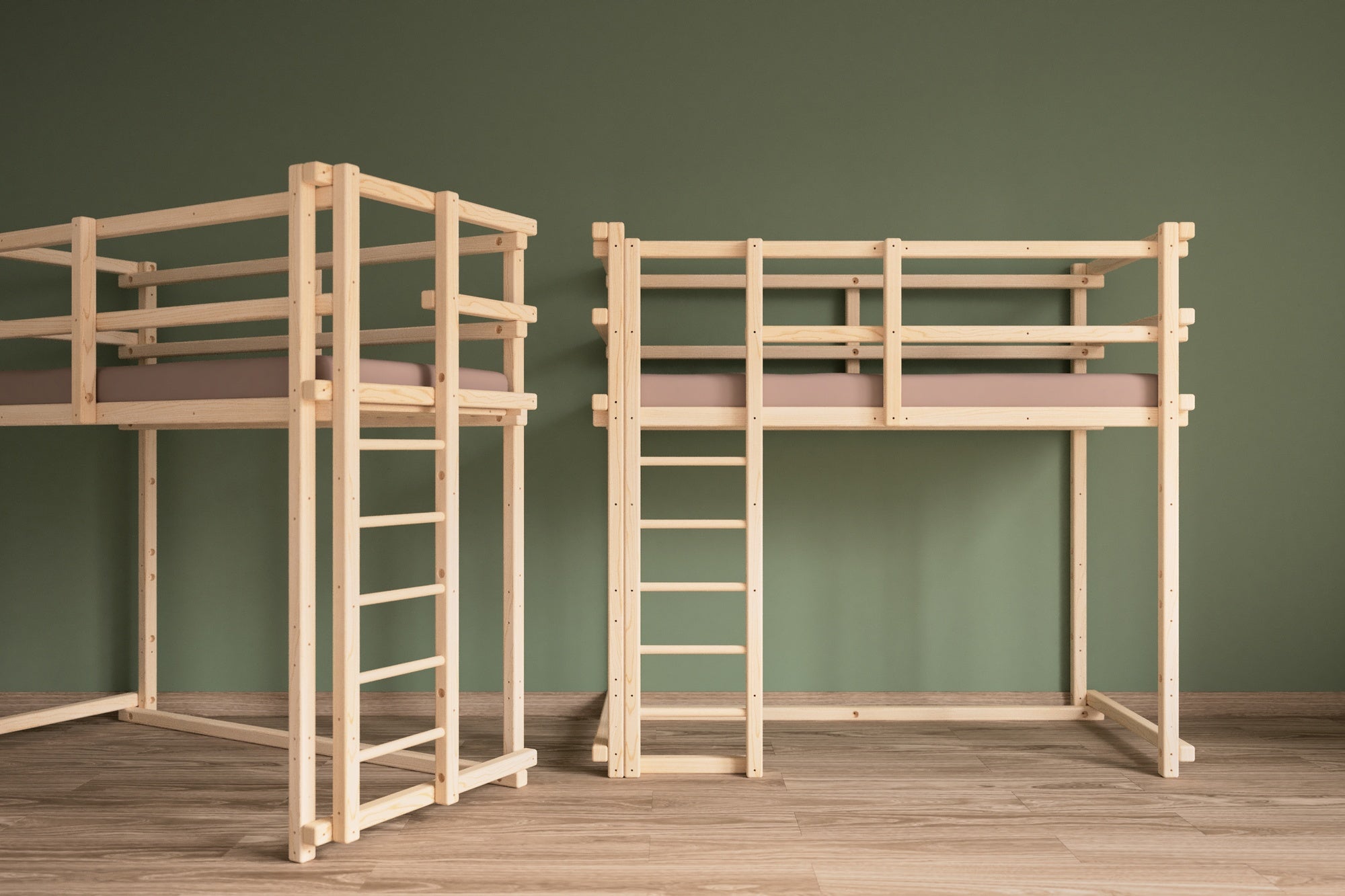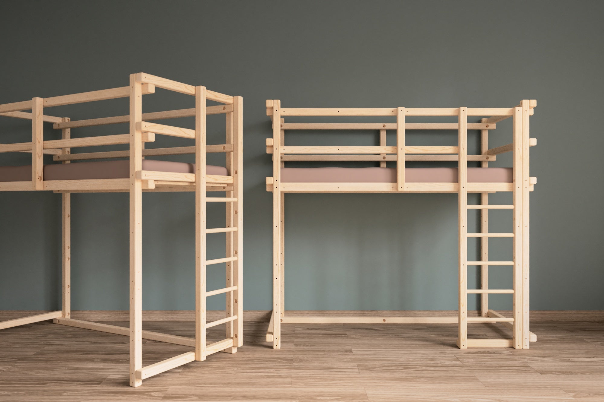 Die Betten basieren auf einem Konstruktionsraster, welches bei einer Matratzengröße von 90×200 cm am besten funktioniert. Bei Betten für eine andere Matratzengröße kann es vorkommen, dass die Klettermodule nicht an jeder Position eingesetzt werden können oder kombinierbar sind. Manchmal sind dann Sonderanfertigungen oder Modifikationen nötig. Wir geben uns größte Mühe alle eure Wünsche und Ideen umzusetzen, möchten hier jedoch kurz auf diese Besonderheit hinweisen.