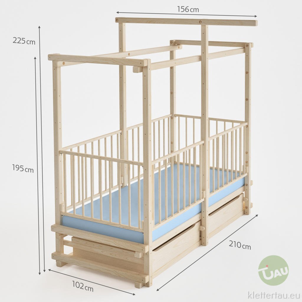 Ihr könnt an eurem TAU-Kinderbett also immer wieder etwas umbauen, anbauen, weglassen, hinzufügen und neu entdecken. Der modulare Aufbau ist ein Grundpfeiler unserer Philosophie. Das war die letzten 25 Jahre so und wird auch so bleiben.