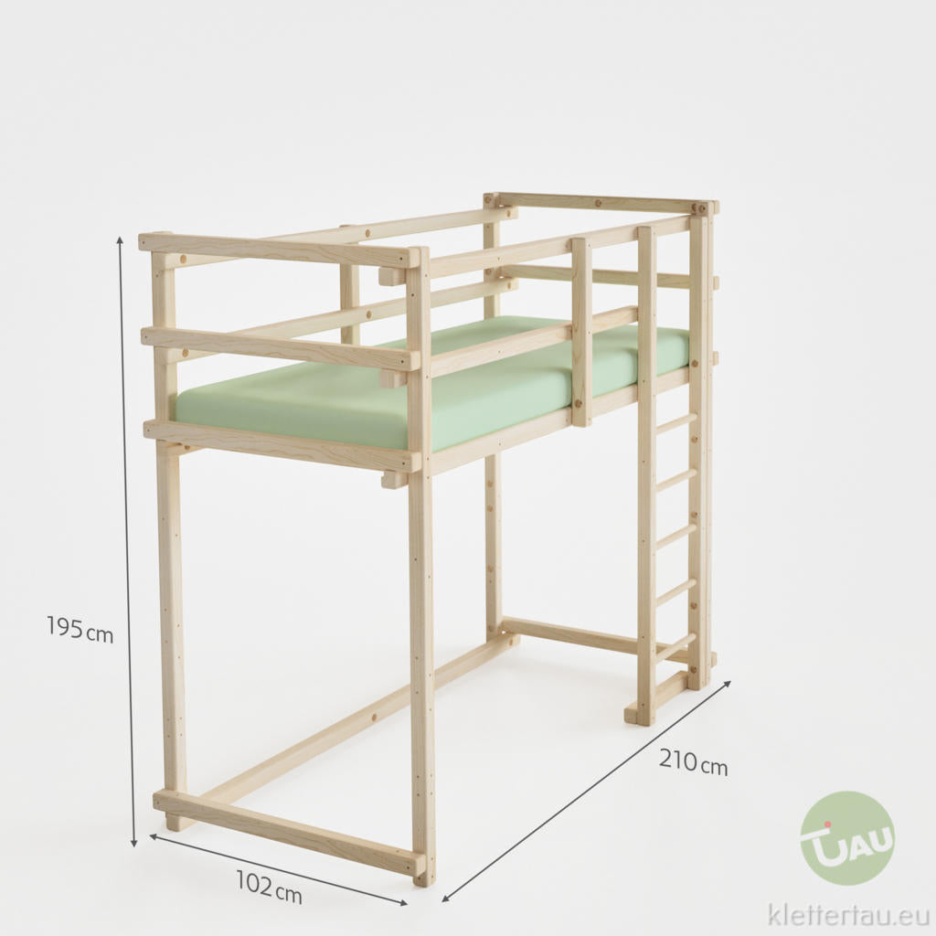 Mit diesem Bett seid Ihr für die Zukunft gerüstet. Ihr wisst noch nicht so genau, wo es mit Eurem TAU-Bett hingehen soll? Dann könnt Ihr hier nichts falsch machen. Erweiterbar in alle Richtungen und doch schon ein vollwertiges Hochbett.