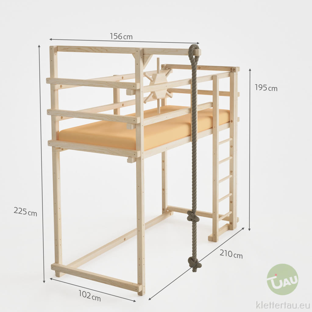 Wir sorgen dafür, dass ihr Kletterbett sicher und stabil ist. Dafür werden unsere Kinderbetten bei der Herstellung einer stetigen Qualitätskontrolle unterzogen. Wie alle TAU-Betten besteht auch das Piratenbett aus Massivholz (nordische Kiefer). Alle Oberflächen werden sanft abgeschliffen und für Oberflächenbehandlungen verwenden wir nur umweltverträgliche und ökologisch unbedenkliche Stoffe.